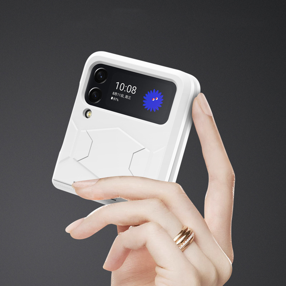 Корпус тонкий и плотно прилегает к смартфону, а также не влияет на использование мобильной беспроводной зарядки. Изготовлен он из поликарбоната, достаточно прочен, чтобы защитить Samsung Galaxy Flip4 от повреждений при падении.