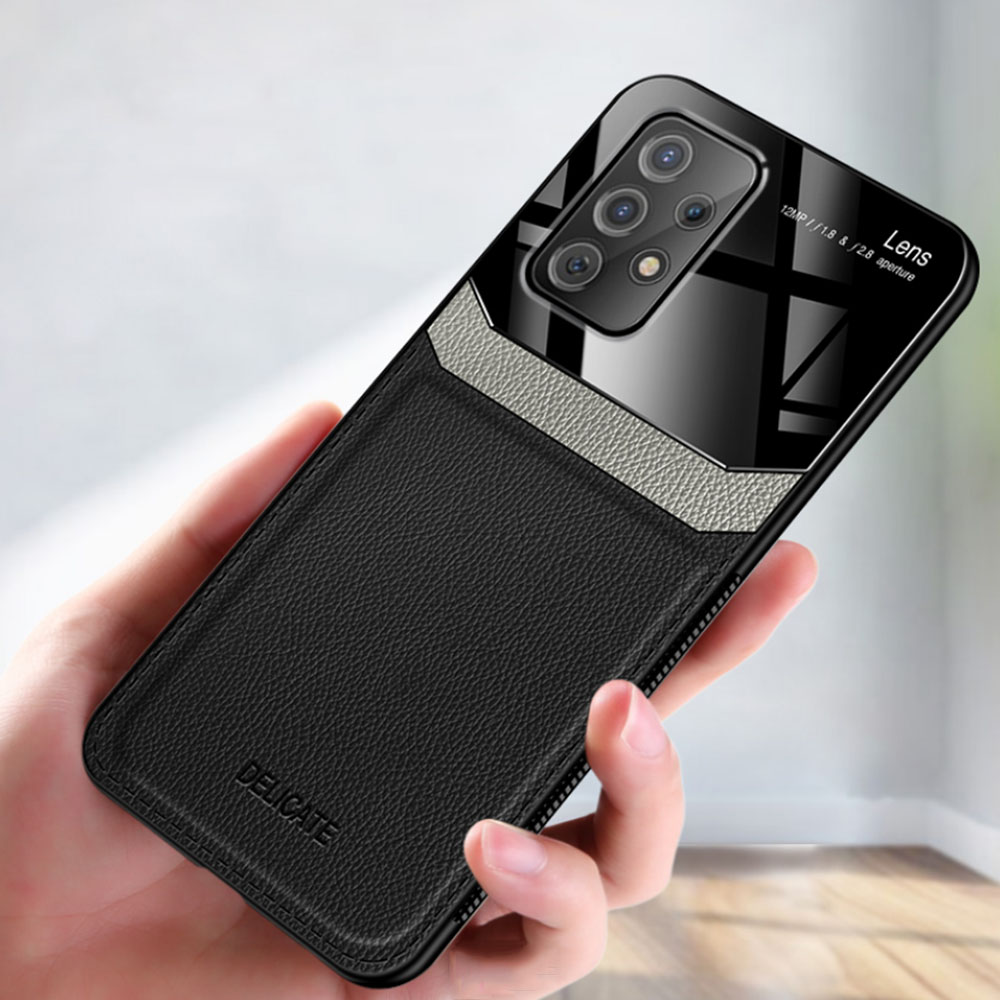 Чехол-накладка также сочетает высококачественные износостойкие материалы: структурированную Эко кожу и отражательный ABS-пластик. Бортики изготовлены из плотного силикона, который отлично держит форму и фиксирует Самсунг Гэлэкси A52 / A52 5G / A52s 5G в бампере.