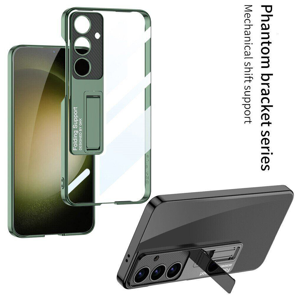 GKK Glass Stand – это чехол-накладка, высокого качества, способен защитить ваш Samsung Galaxy S24 Plus от царапин, пыли и повреждений при падении телефона. Также данная модель имеет небольшую подставку, благодаря которой можно просматривать видео или фильмы на смартфоне.