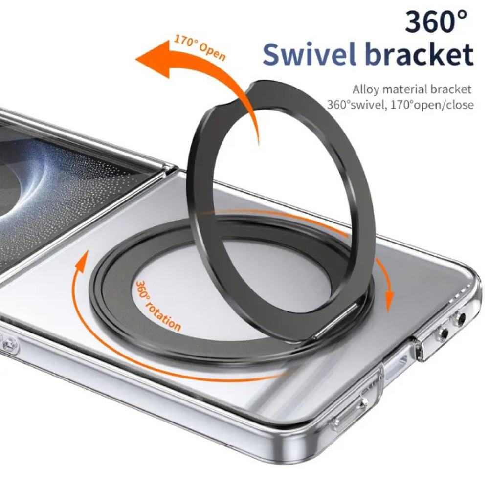 Чехол оснащен удобным кольцом, которое вращается на 360°, обеспечивая комфортное удержание смартфона и возможность использовать его в качестве подставки во время просмотра видео или видеосвязи.