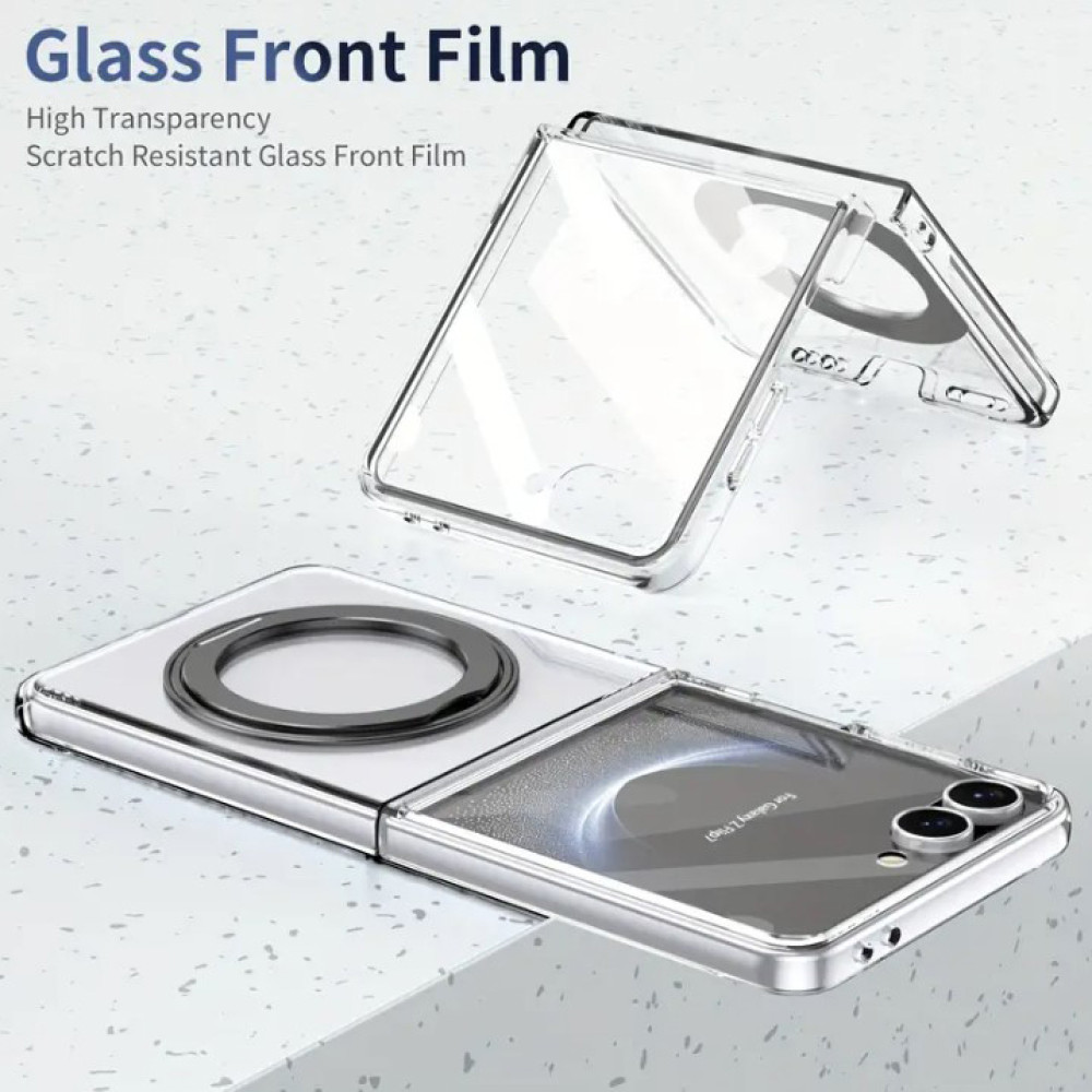 Чехол-накладка JM ice для Samsung Galaxy Flip7 с кольцом и поддержкой беспроводной зарядки.