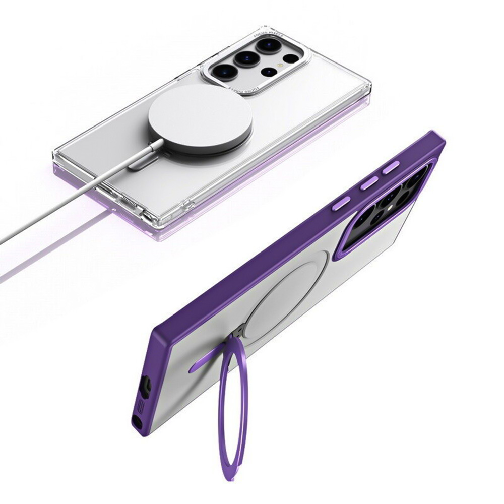 Чехлы Magsafe Magnetic Ring для Samsung Galaxy S23 Ultra сочетают сильную магнитную технологию со сложной подставкой, создав компактный и практичный дизайн. Крышка чехла крепится ко всем аксессуарам Magsafe.