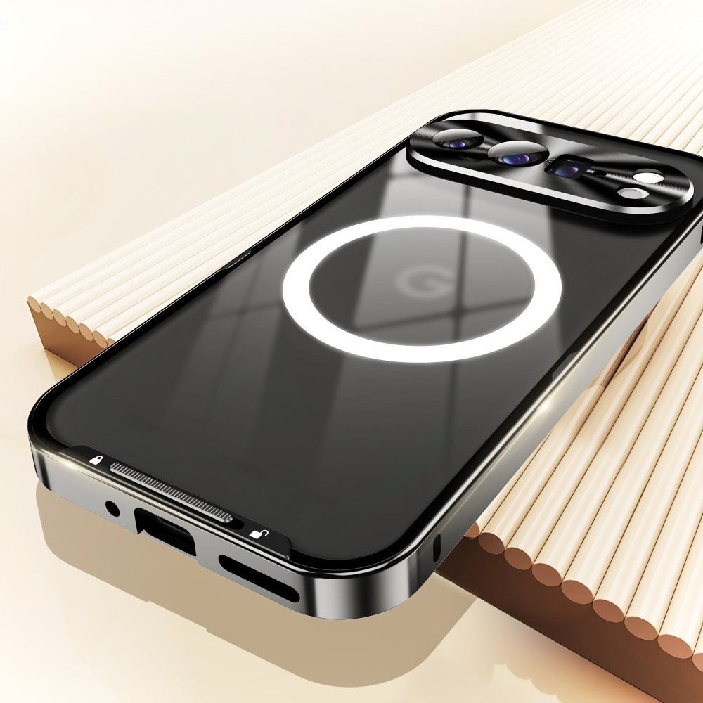 Чехол Metal Glass для Google Pixel 9 Pro изготовлен из TPU и жесткого прочного металла. Такой дизайн гарантирует надежную защиту смартфона со всех сторон.