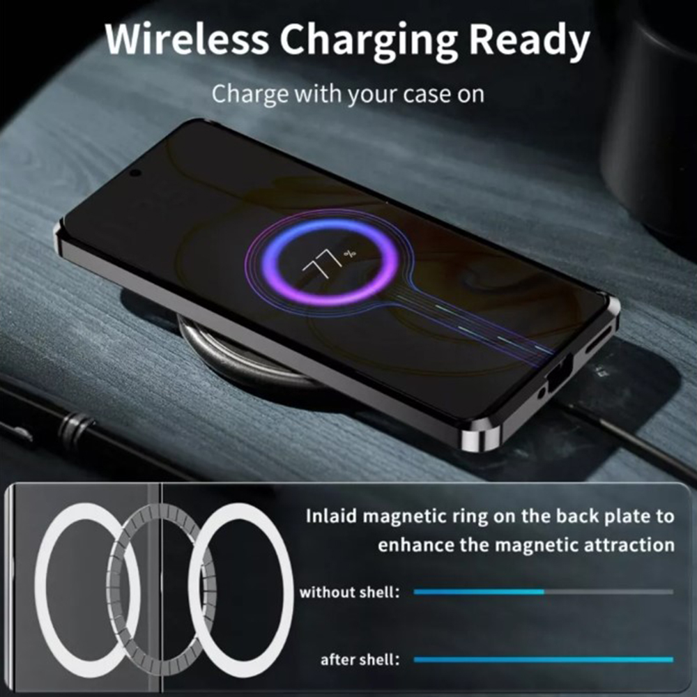 На задней панели есть магнит, позволяющий использовать аксессуары MagSafe, такие как павербанки, зарядные устройства, кошельки и т.д. Чехол поддерживает быструю зарядку, совместимую с беспроводным зарядным устройством Magsafe без снятия чехла.