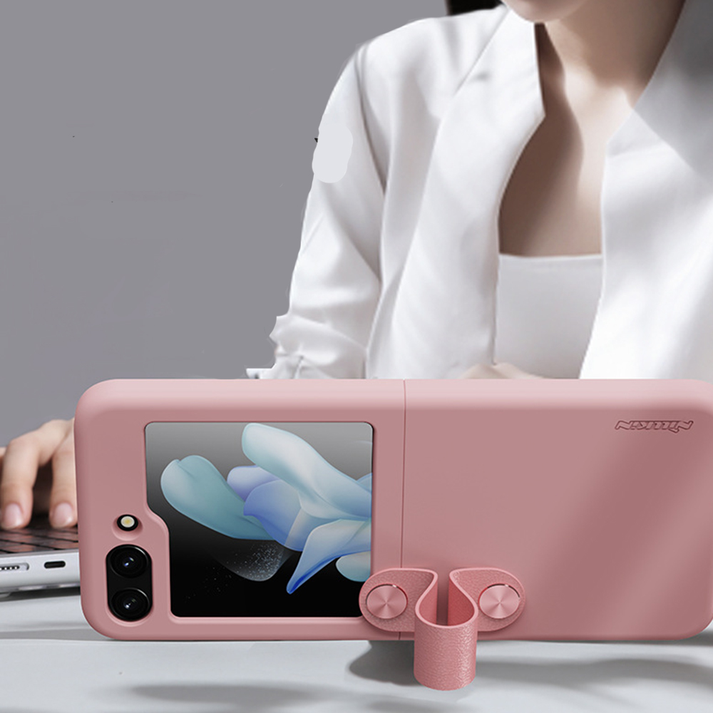 Чехол-накладка Nillkin Finger Strap liquid Silicone для Samsung Galaxy Z Flip5 c соединяющим ремешком черный