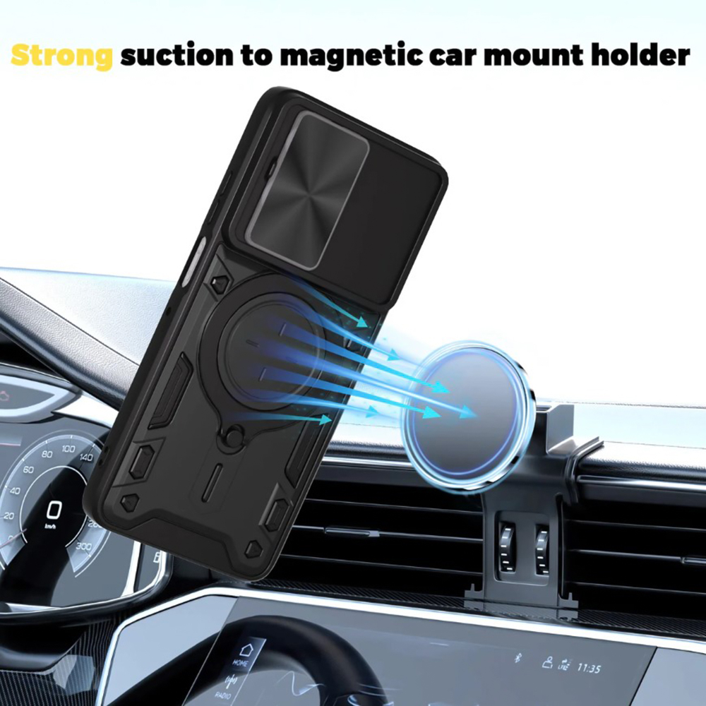 Кроме кольца, еще одной особенностью чехла является надежная защита камеры, ведь в нем встроена пластинка, которой можно закрыть камеру и быстро и удобно открыть когда понадобится.