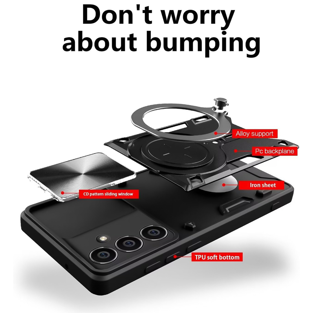 Кроме кольца еще одной особенностью чехла является надежная защита камеры, ведь в нем встроена пластинка, которой можно закрыть камеру и достаточно быстро и удобно открыть когда понадобится.