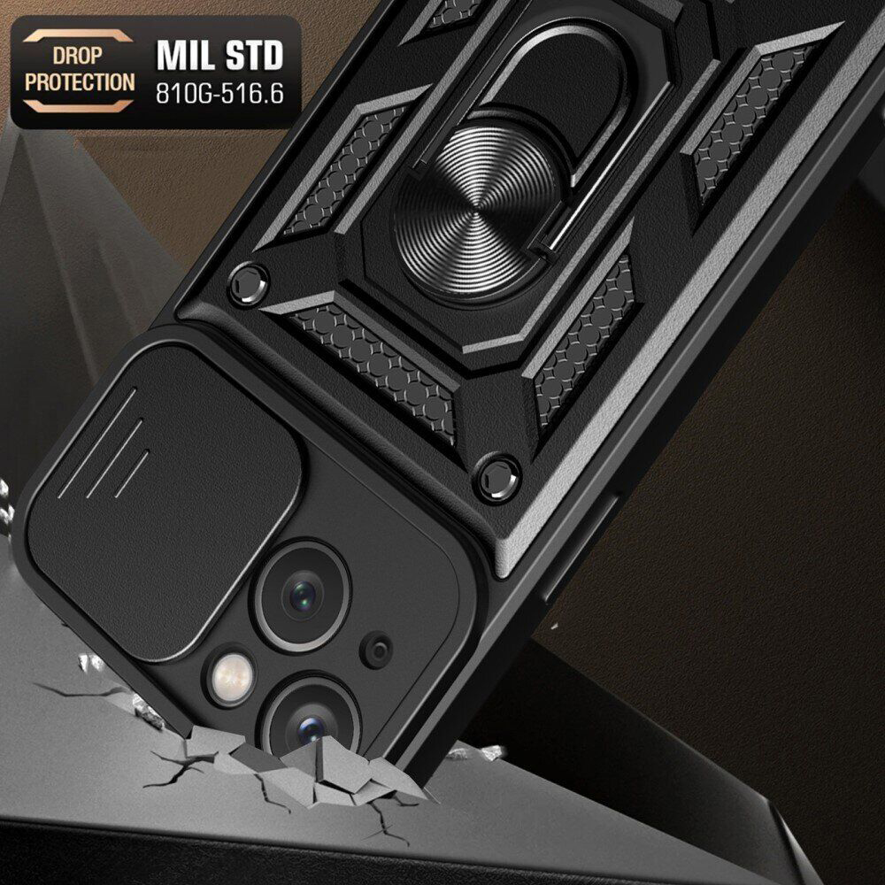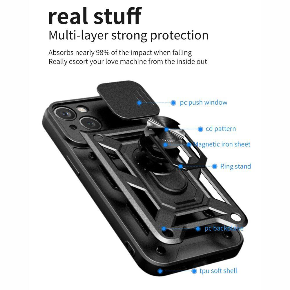 Ricco Camera Sliding - это стильный противоударный чехол с многофункциональным кольцом держателем.
