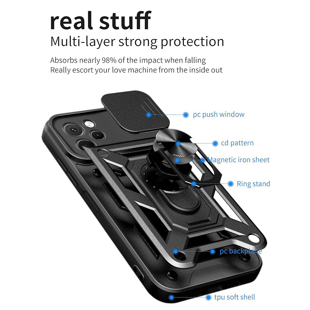 Ricco Camera Sliding - это стильный противоударный чехол с многофункциональным кольцом держателем.