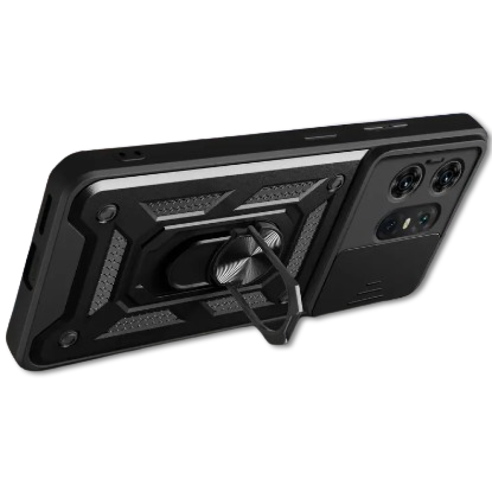 Ricco Camera Sliding – это стильный противоударный чехол с многофункциональным держателем кольцом. Именно бронированный чехол лучше защищает от возможных повреждений, которые могут возникнуть в результате падений и ударов.