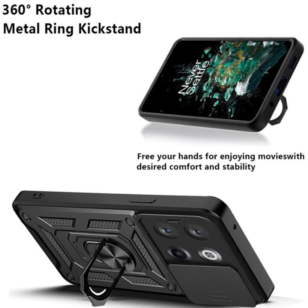 Ricco Camera Sliding – это стильный противоударный чехол с многофункциональным держателем кольцом. Именно бронированный чехол лучше защищает от возможных повреждений, которые могут возникнуть в результате падений и ударов.