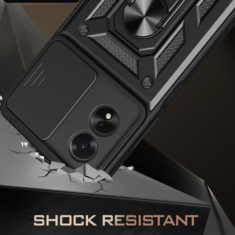 Ricco Camera Sliding - это стильный противоударный чехол с многофункциональным кольцом держателем.