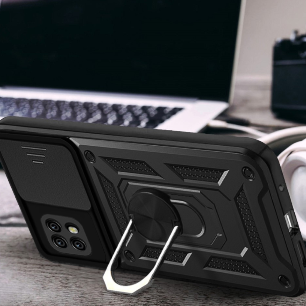 Ricco Camera Sliding - это стильный противоударный чехол с многофункциональным кольцом держателем.