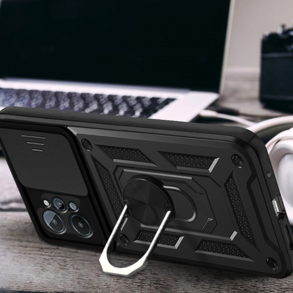 Ricco Camera Sliding - это стильный противоударный чехол с многофункциональным кольцом держателем.