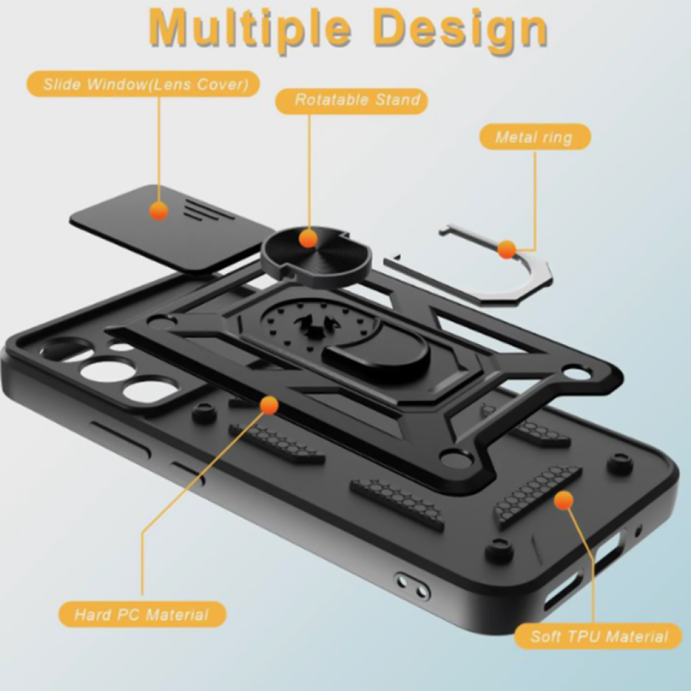 Ricco Camera Sliding - это стильный противоударный чехол с многофункциональным кольцом держателем.