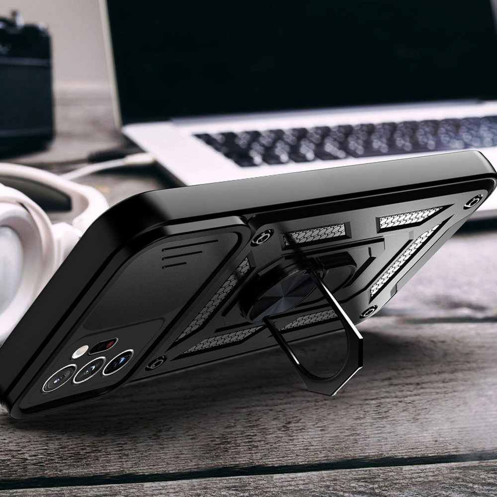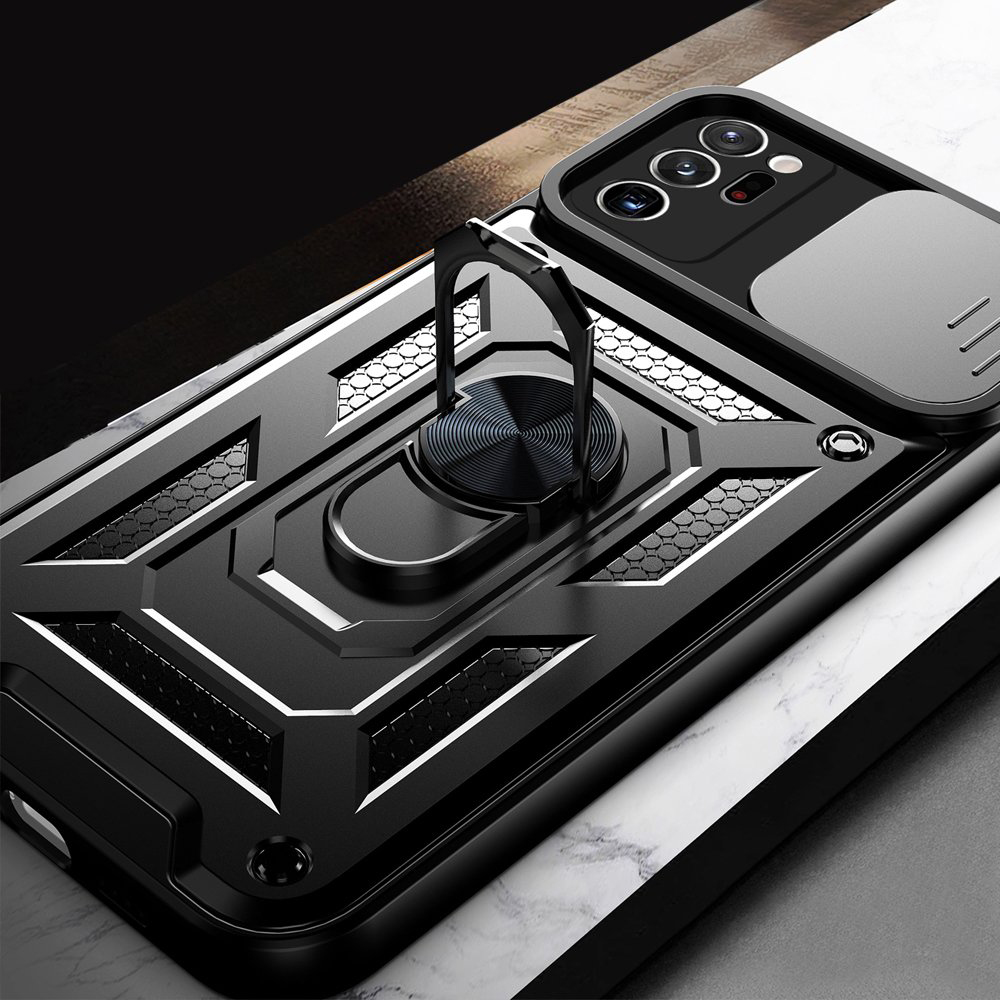 Ricco Camera Sliding - это стильный противоударный чехол с многофункциональным кольцом держателем.