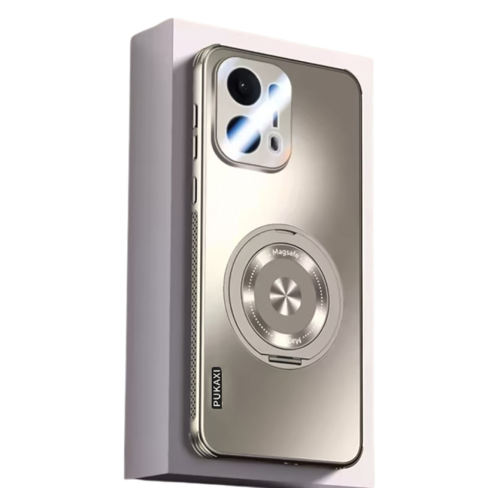 PU Kaxi для Oppo Reno13 Pro — стильный и надежный защитный чехол из жесткого пластика (PC) с встроенным металлическим магнитным кольцом.