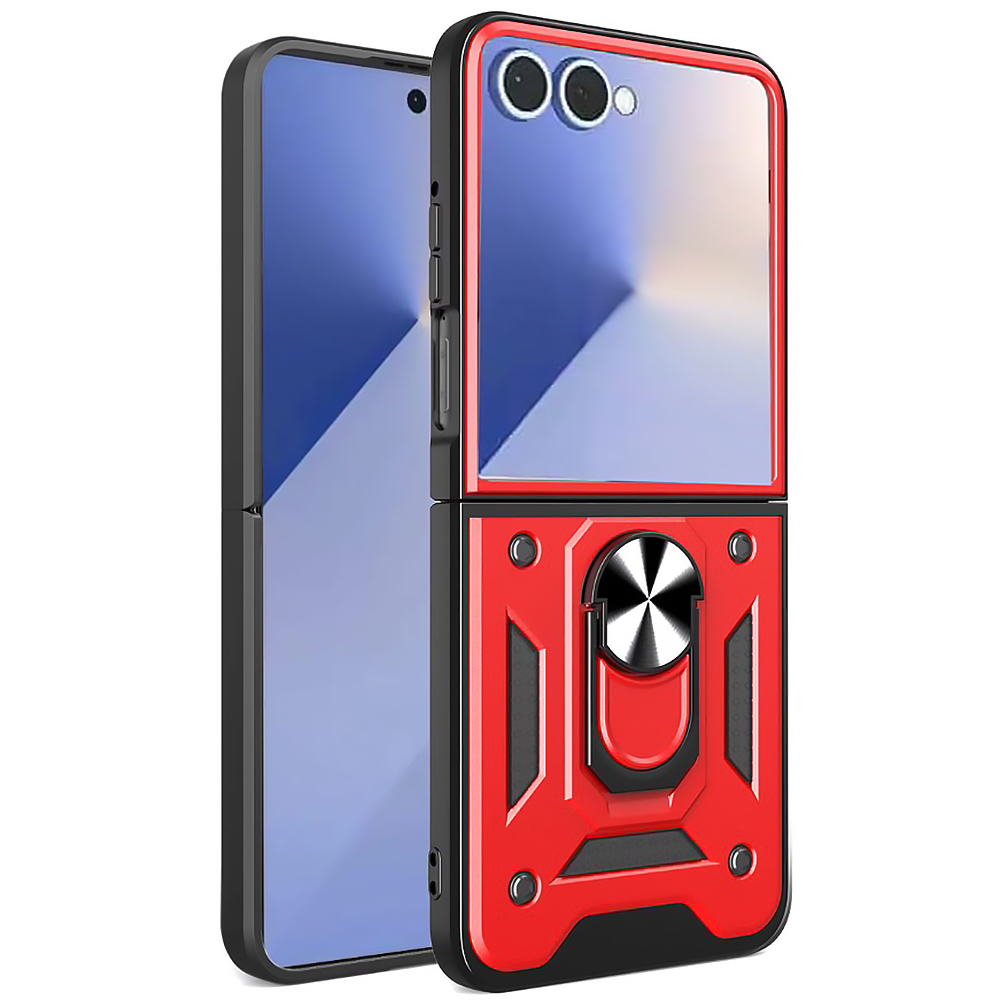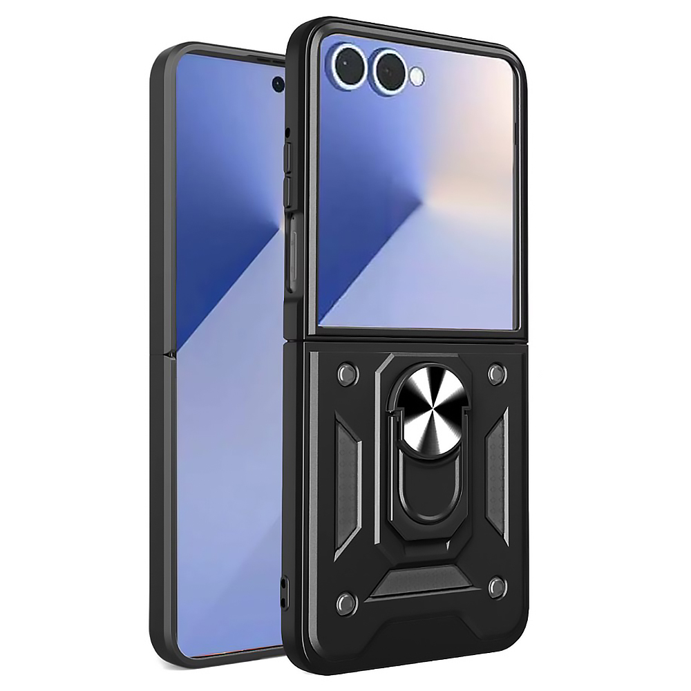 Чехол Ricco Robot Case для Samsung Galaxy Flip7 с металлическим кольцом - держателем черный