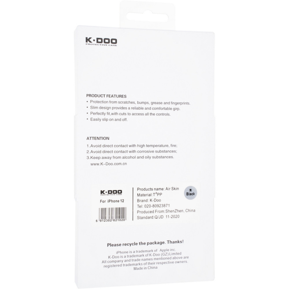 Ультратонкий чехол-накладка K-Doo Air Skin на заднюю часть сделан из очень тонкого и гибкого пластика, разработан и создан специально для данной модели. Накладка не закрывает важные разъемы и камеру, и очень плотно сидит на телефоне. Благодаря невероятно маленькой толщине в 0,3 мм чехол совершенно не утяжелит и не утолщит ваш гаджет, при этом надежно защитит заднюю крышку и все стороны от царапин, а также скроет возможные дефекты корпуса. У чехла присутствует слабая прозрачность. Чехол отличается повышенной защитой камеры, так как присутствуют вырезы для всех линз и вспышки по отдельности, а остальная площадь камеры защищена. В нижней части имеется логотип производителя. Боковые кнопки устройства открыты: для них предусмотрены специальные вырезы, поэтому доступ к управлению смартфоном неограничен.