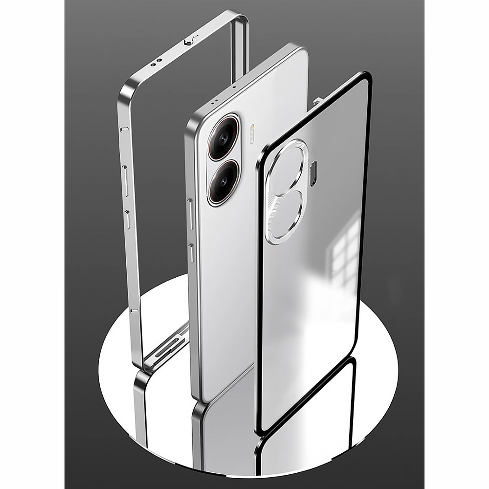 Чехол Metal Glass для Xiaomi Poco F7 изготовлен из поликарбоната и прочного металла. Это сочетание обеспечивает качественную защиту смартфона при ударах и падении. Его основание имеет матовое полупрозрачное покрытие и металлическую рамку вокруг дисплея и блока камер.