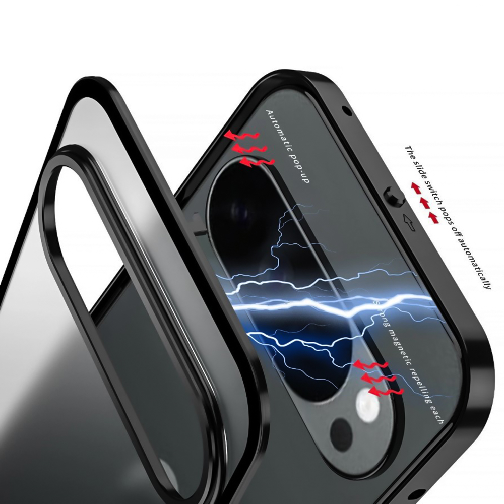 Чтобы установить чехол на ваш смартфон, необходимо на верхней части чехла подвинуть специальную кнопку влево, тогда отсоединится сама накладка и рамка. После этого необходимо установить рамку на смартфон и уже тогда зафиксировать накладку в рамке.