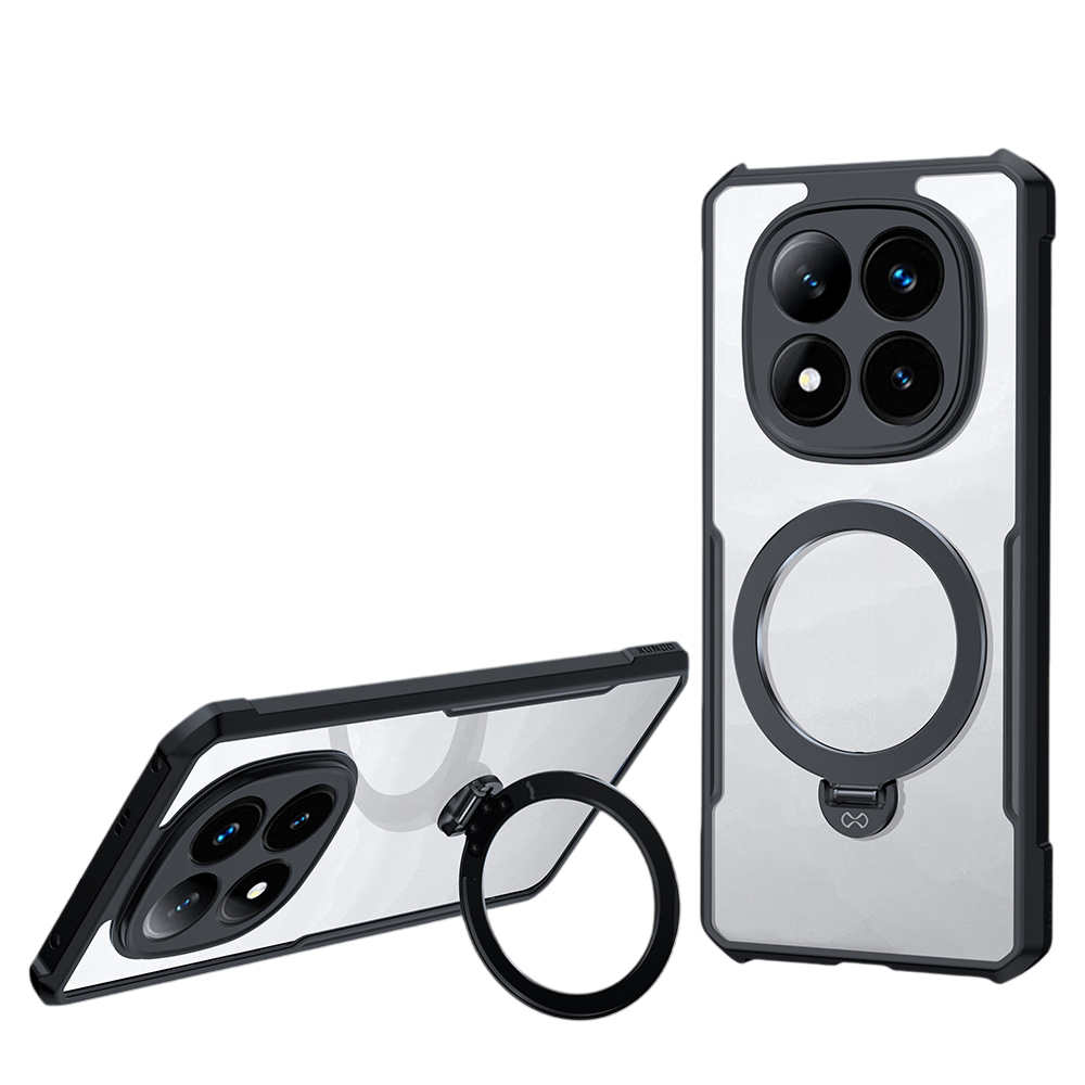 Защитный противоударный чехол для Xiaomi Redmi Note 14 Pro+ 5G изготовлен из поликарбоната и термополиуретана, что гарантирует надёжную защиту вашего устройства. В центре задней части расположено металлическое кольцо, которое выполняет сразу несколько функций: служит подставкой для удобного просмотра видео или чтения, а также позволяет закрепить смартфон на магнитном автомобильном держателе.