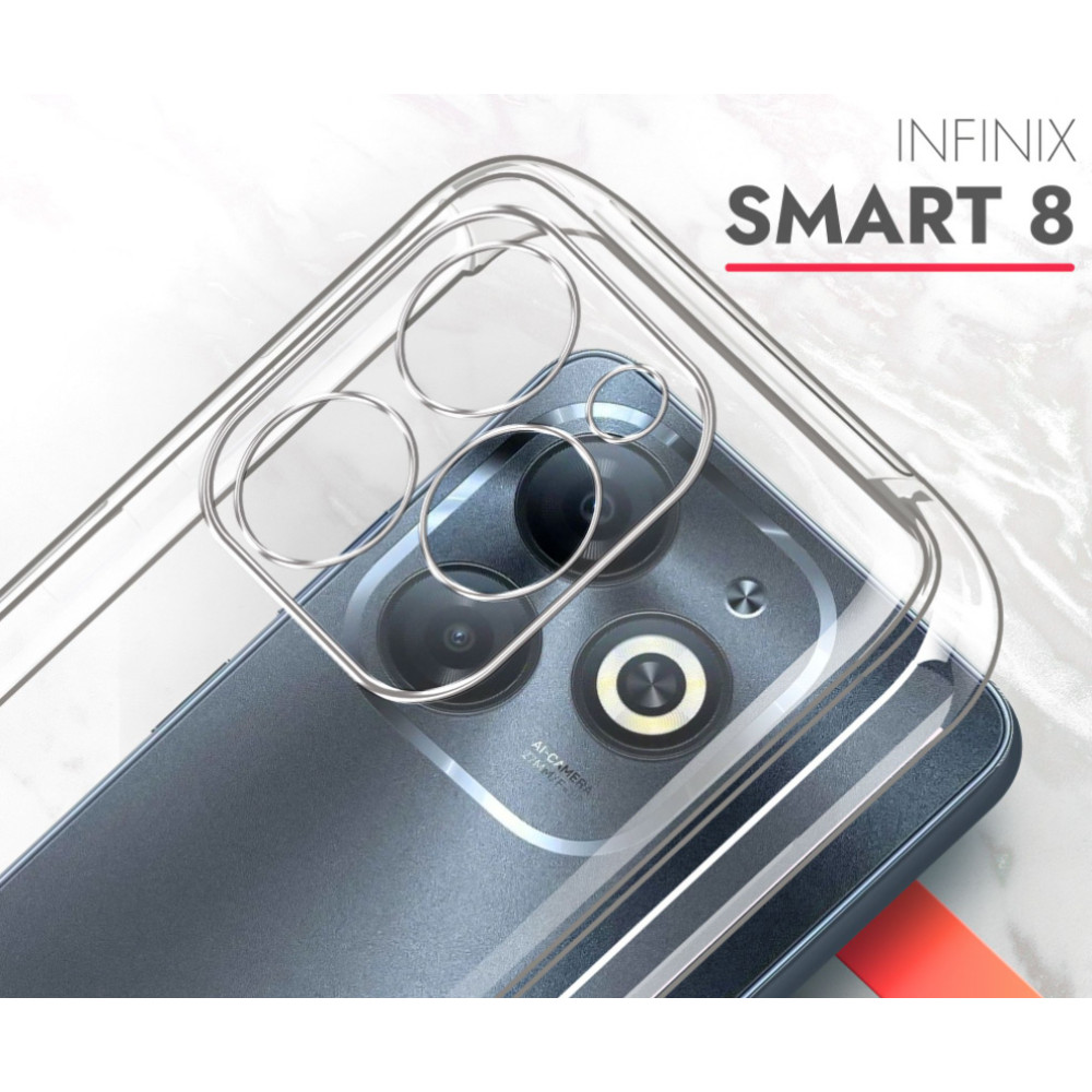 Силиконовый чехол - это прозрачная накладка, которая по сравнению с другими дорогостоящими моделями будет не менее надежно защищать ваш Infinix Smart 8 / Hot 40i от ударов, царапин, трещин и потертостей.