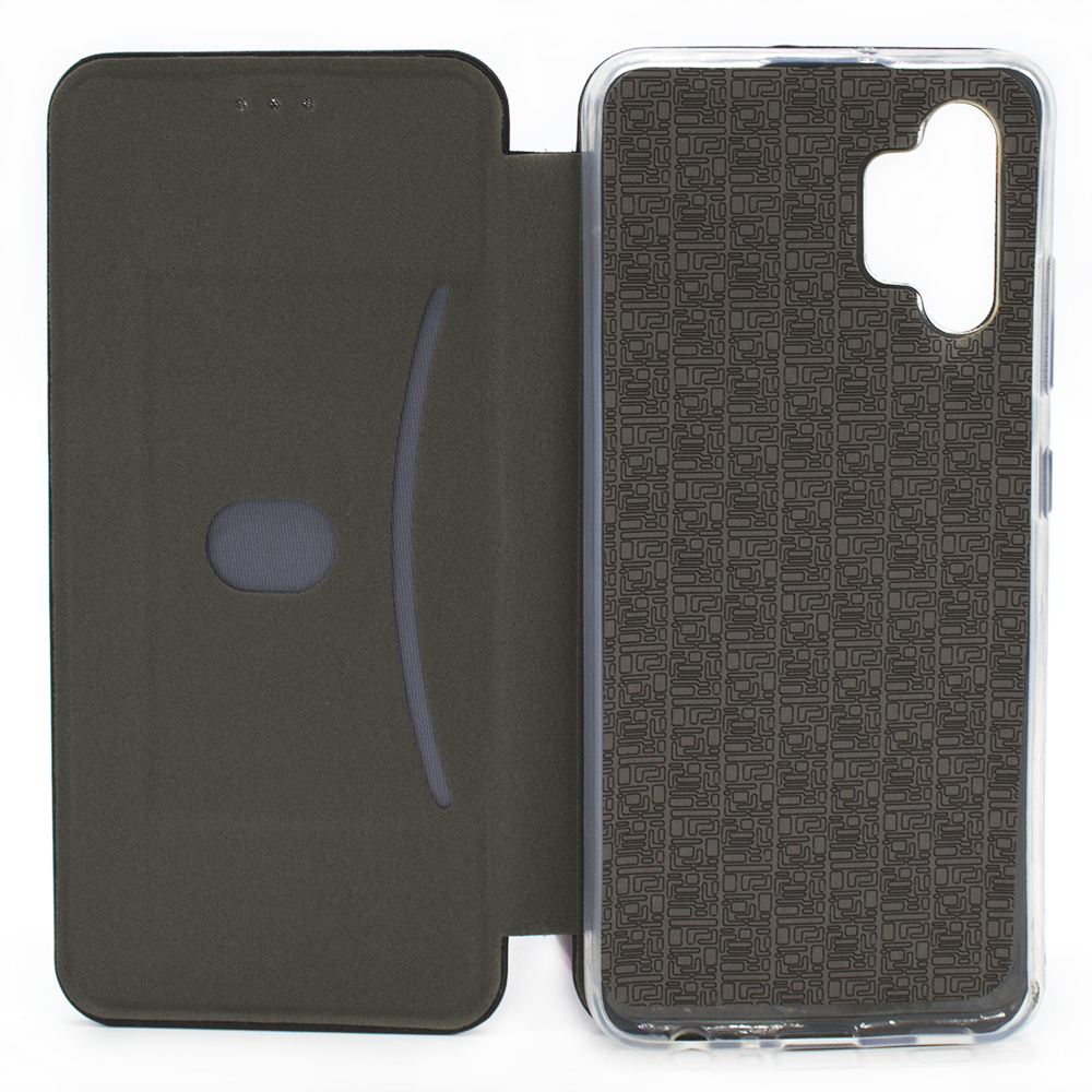 Этот чехол имеет силиконовую прозрачную наккладку, она гибкая и телефон у нее вставить проблем не составит. Крышки чехла сами по себе твердые однако снаружи покрыты слегка мягкой искусственной кожей. Изнутри крышки покрыты другим материалом - микрофиброй, которая защищает экран девайса от потертостей. Чехол книжка для Самсунг Гэлэкси A32 имеет встроенный магнит в переднюю крышку благодаря чему она хорошо фиксируется и случайно не откроется. Чехол удобно складывается в подставку, бесспорно полезная опция в эпоху скоростного мобильного интернета на фоне популярности видеосервисов. Полезная опция чехла это внутренний карман для карточки или визитки.