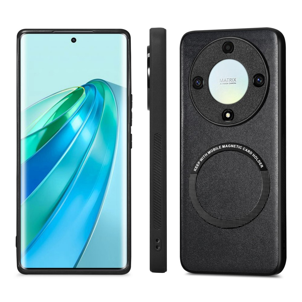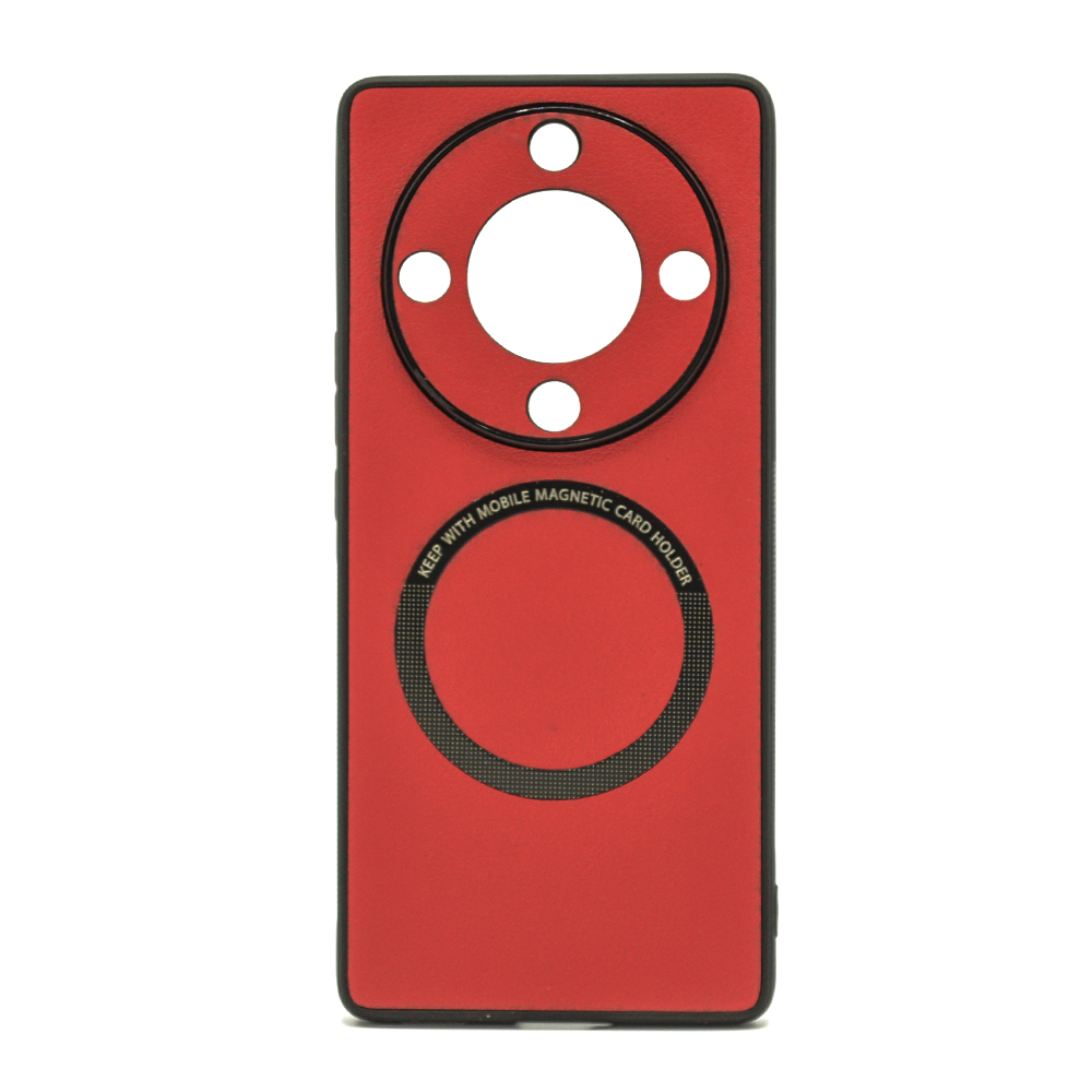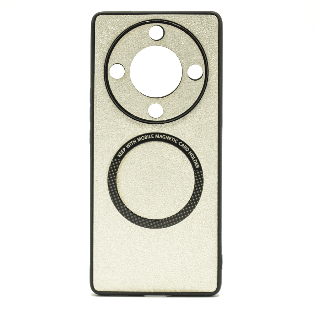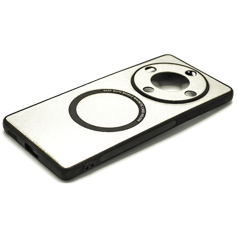 Кожаный чехол - накладка Leather Hybrid Case для Honor Magic 5 Lite с металлической вставкой серебряный