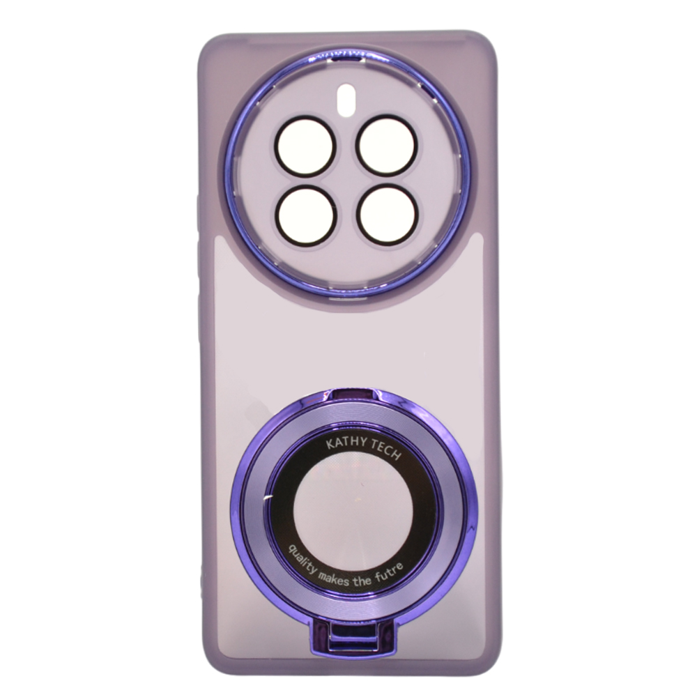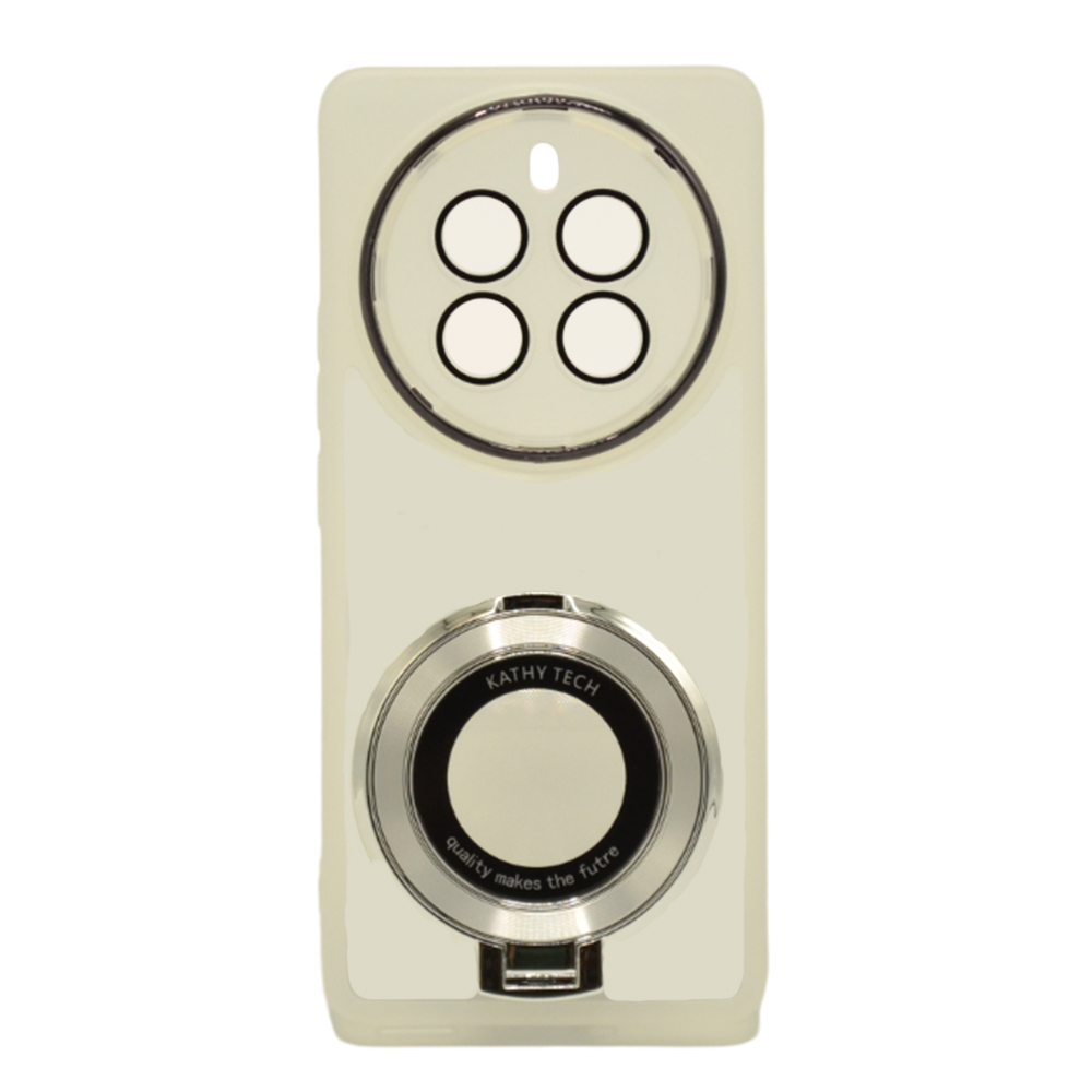 Написать отзыв о Силиконовый чехол накладка Clear Case Kathy Tech для Realme 12 Pro / 12 Pro Plus с металлическим кольцом держателем и защитой для камеры белый