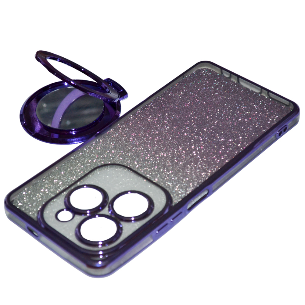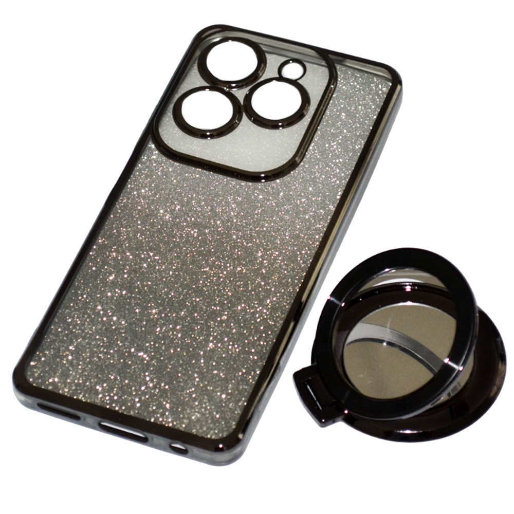 Силиконовый чехол накладка Glitter Case для Infinix Hot 40 / Hot 40 Pro​ с металлическим кольцом-зеркалом в комплекте