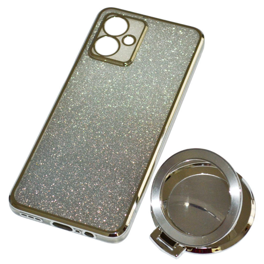 Силиконовый чехол накладка Glitter Case для Motorola Moto G54 с металлическим кольцом-зеркалом в комплекте