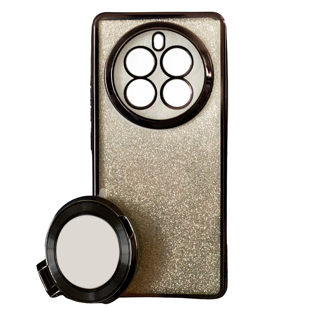 Силиконовый чехол накладка Glitter Case для Realme 12 Pro / 12 Pro Plus с металлическим кольцом-зеркалом в комплекте черный