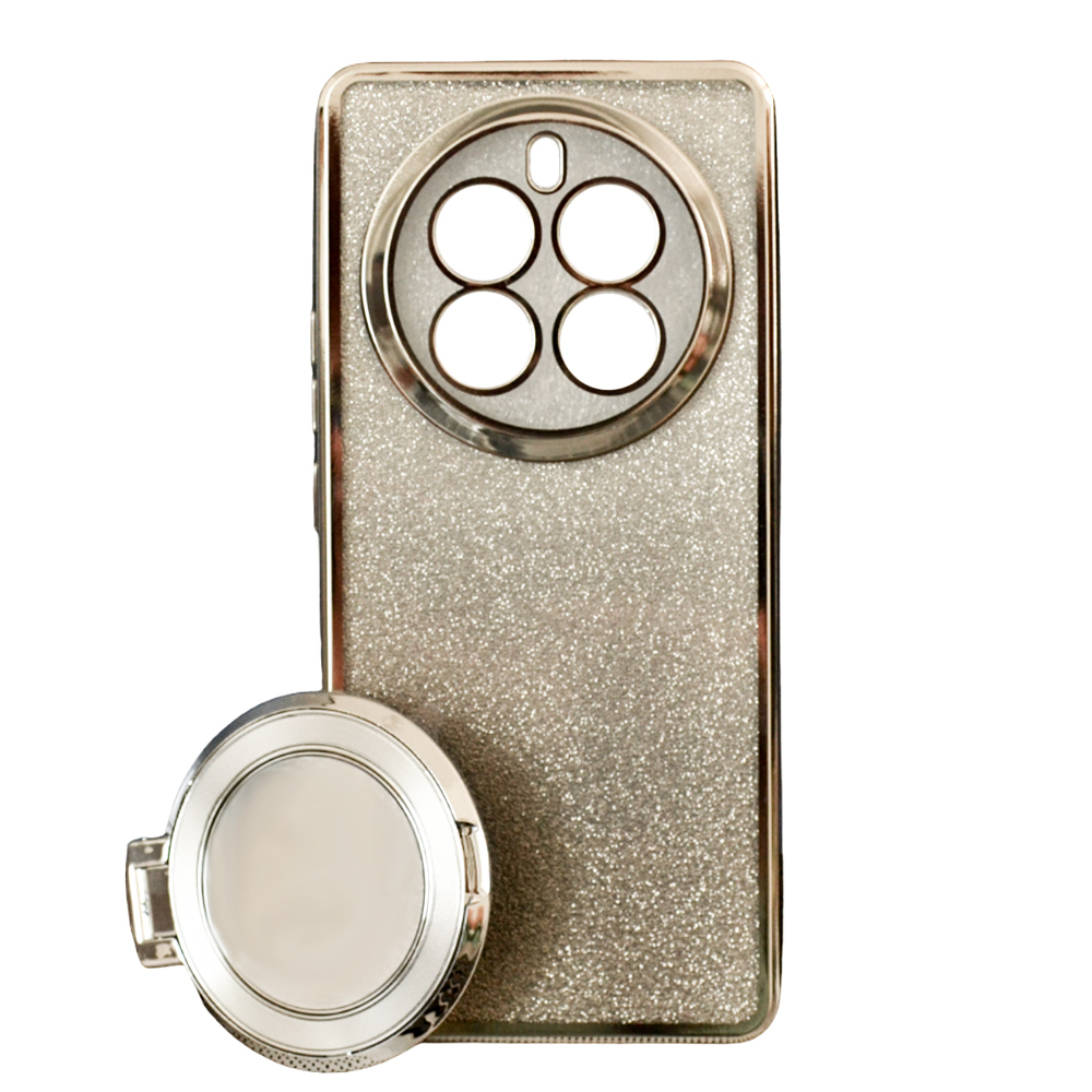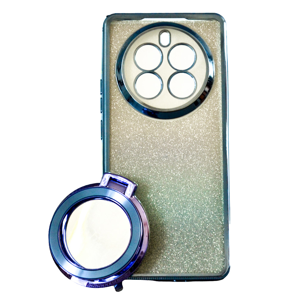 Написать отзыв о Силиконовый чехол накладка Glitter Case для Realme 12 Pro / 12 Pro Plus с металлическим кольцом-зеркалом в комплекте черный