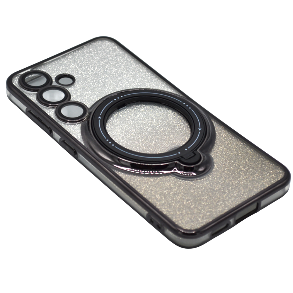 Написать отзыв о Силиконовый чехол накладка Glitter Case для Samsung Galaxy S24 с металлическим кольцом держателем и защитой для камеры черный