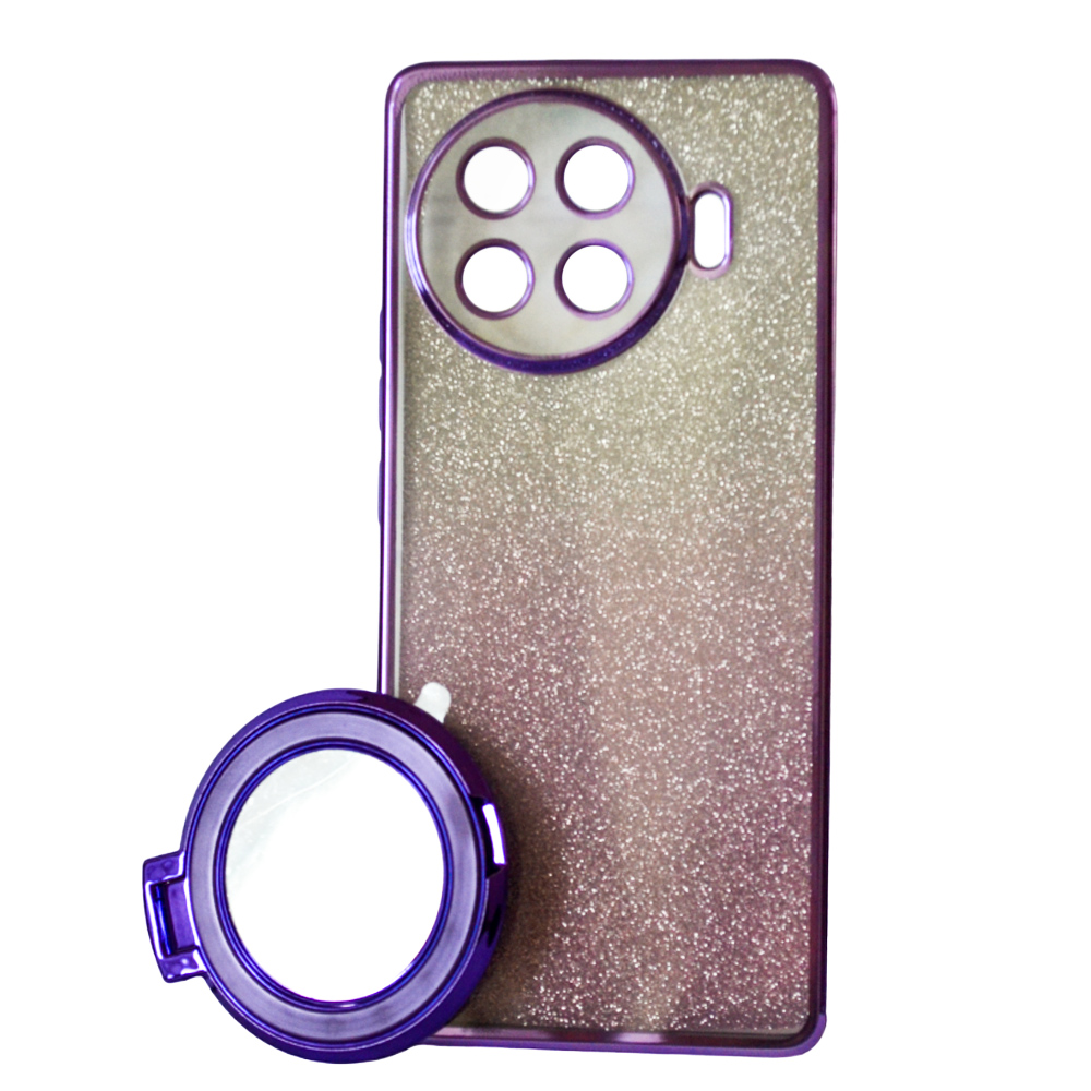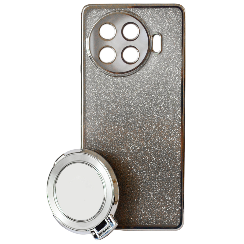 Силиконовый чехол накладка Glitter Case для Tecno Spark 20 Pro Plus с металлическим кольцом-зеркалом в комплекте голубой