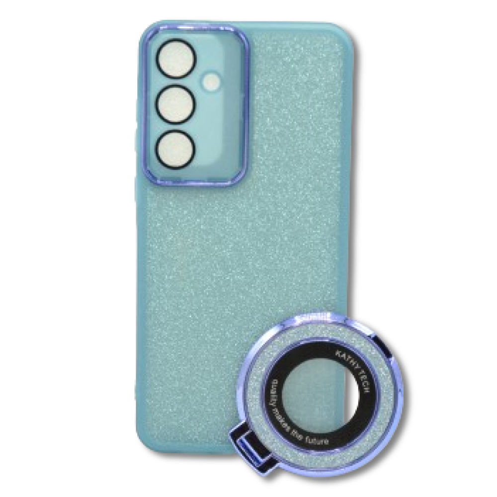 Силиконовый чехол накладка Glitter Case Kathy Tech для Samsung Galaxy A55​ с металлическим кольцом держателем в комплекте голубой