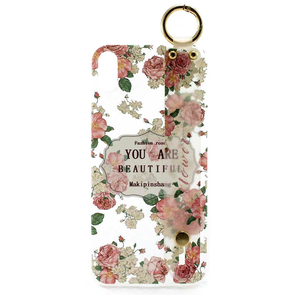 Силиконовый чехол накладка Epik Flowers для Apple Iphone X/XS - стильный чехол с ремешком который создаст необычный образ для вашего телефона и обеспечит его надежную защиту.