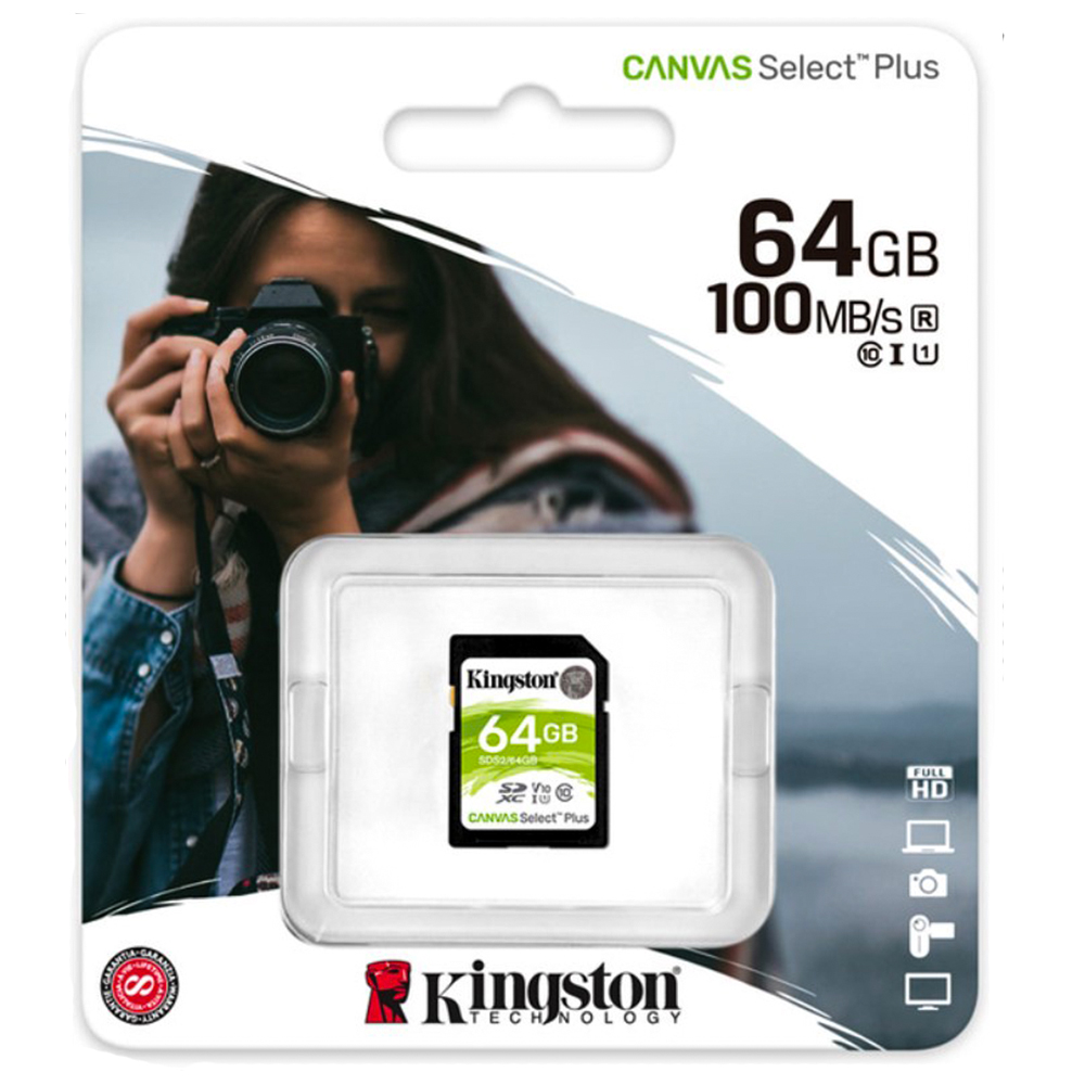 Карта памяти SDXC 64GB Kingston Canvas Select Plus – надёжное решение для хранения фото, видео и других файлов.