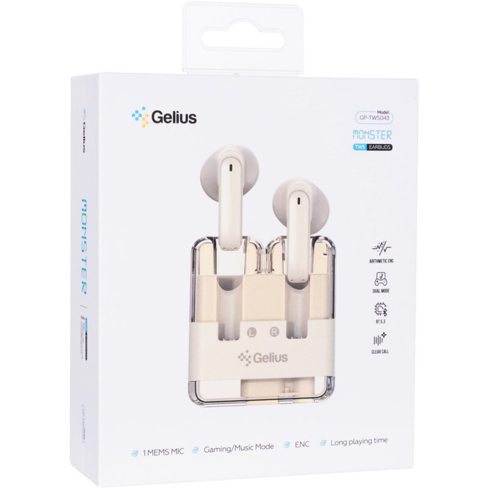 Беспроводные Bluetooth наушники Gelius Monster GP-TWS043 TWS 300mAh, Biege
