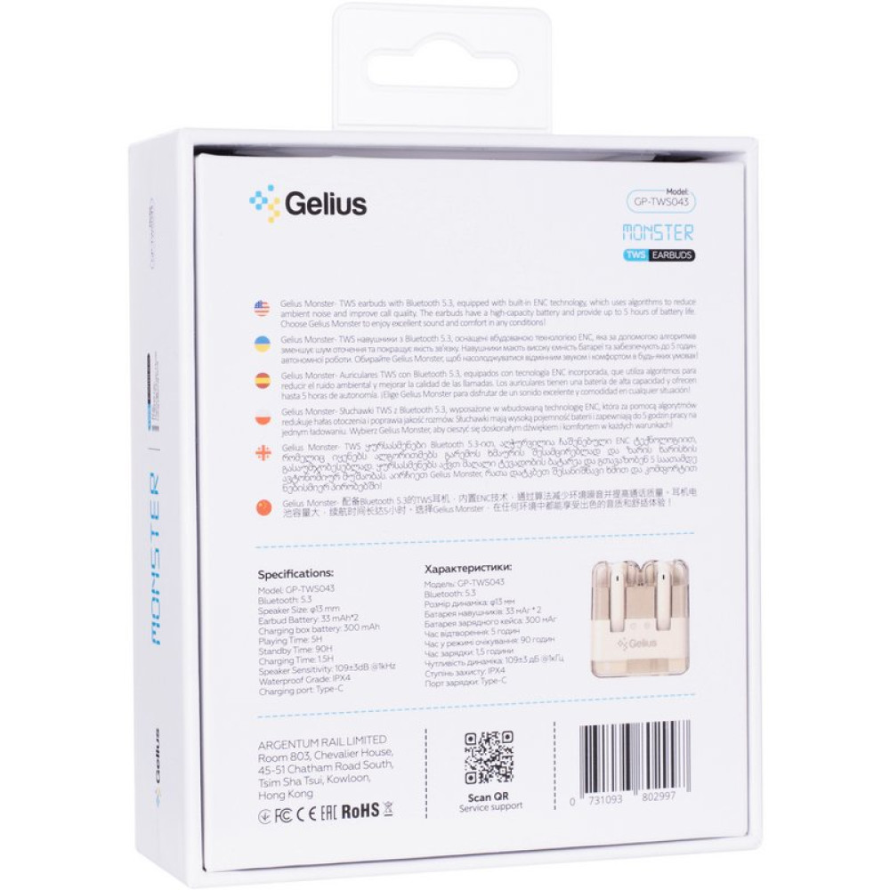 TWS наушники Gelius Monster - это не просто гарнитура, а стильный и удобный аксессуар, который дополнит ваш образ и обеспечит комфорт в любых условиях. Прекрасное качество звука, удобный игровой режим, защита от влаги и длительная автономная работа делают их универсальным выбором для современного пользователя
