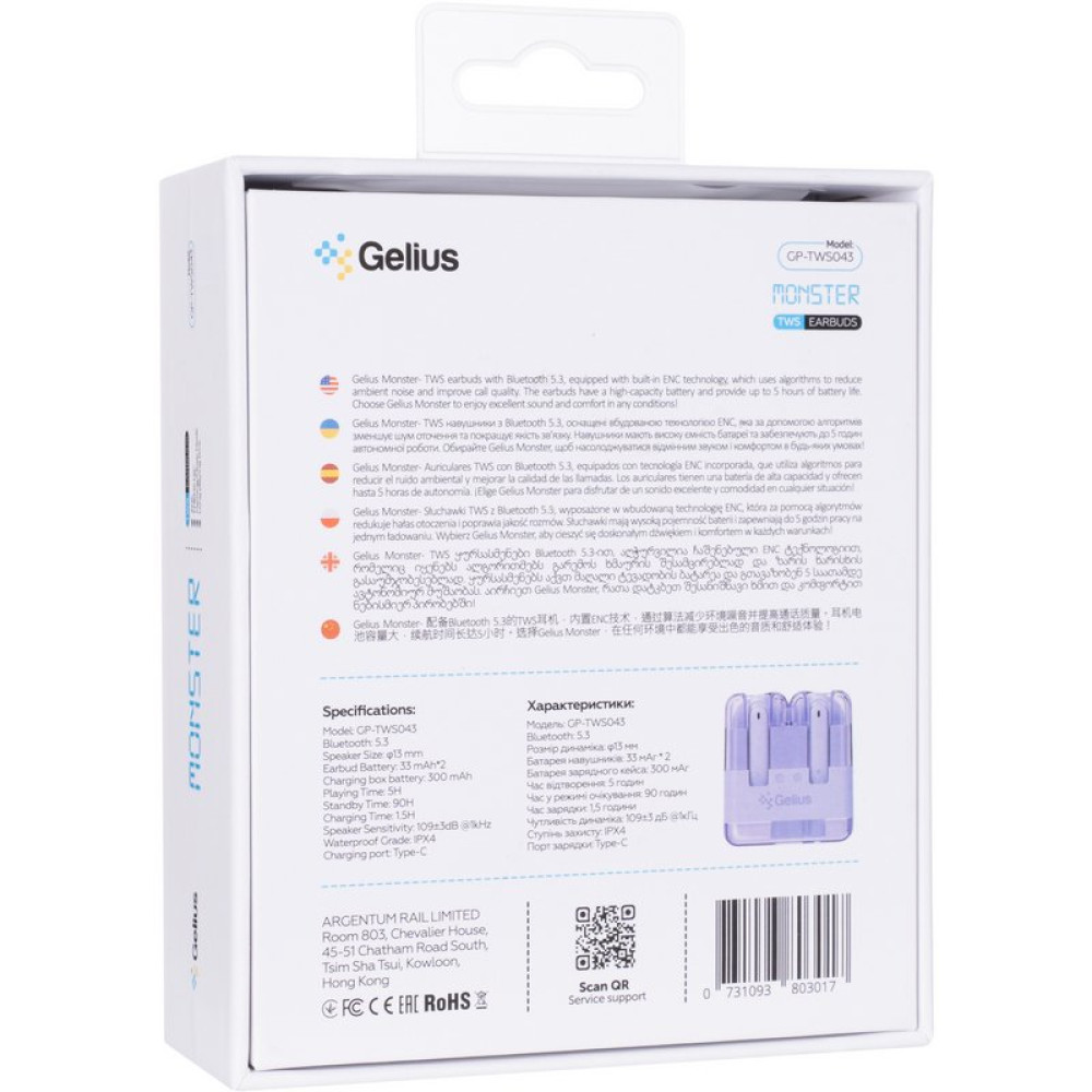 Одной из главных функций Gelius Monster является встроенная технология ENC (Environmental Noise Cancellation), активно уменьшающая фоновый шум с помощью алгоритмов. Это позволяет слышать звуки даже в шумной среде, обеспечивая высокое качество связи во время телефонных разговоров и чистый звук во время прослушивания музыки. ENC делает эти наушники отличным выбором для использования в транспорте, офисе или на улице