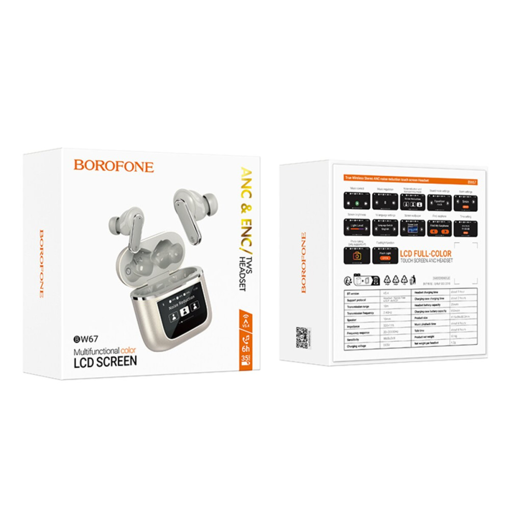 Беспроводные наушники Borofone BW67 Gorgeous предоставляют непревзойденное качество звука и гарантируют свободу движений без ограничений. Идеально подходят для сложных условий (например, тренировки) и для повседневного использования. Наушники маленькие и легкие, что делает комплект идеальным для многократного использования без нагрузки на уши. Эргономичный дизайн обеспечивает надежную посадку и предотвращает выпадение наушников, активное шумоподавление (ANC) погружает вас в музыку, исключая внешний шум, а специальное шумоподавление при звонках (ENC) гарантирует чистоту вашего голоса в любом окружении.