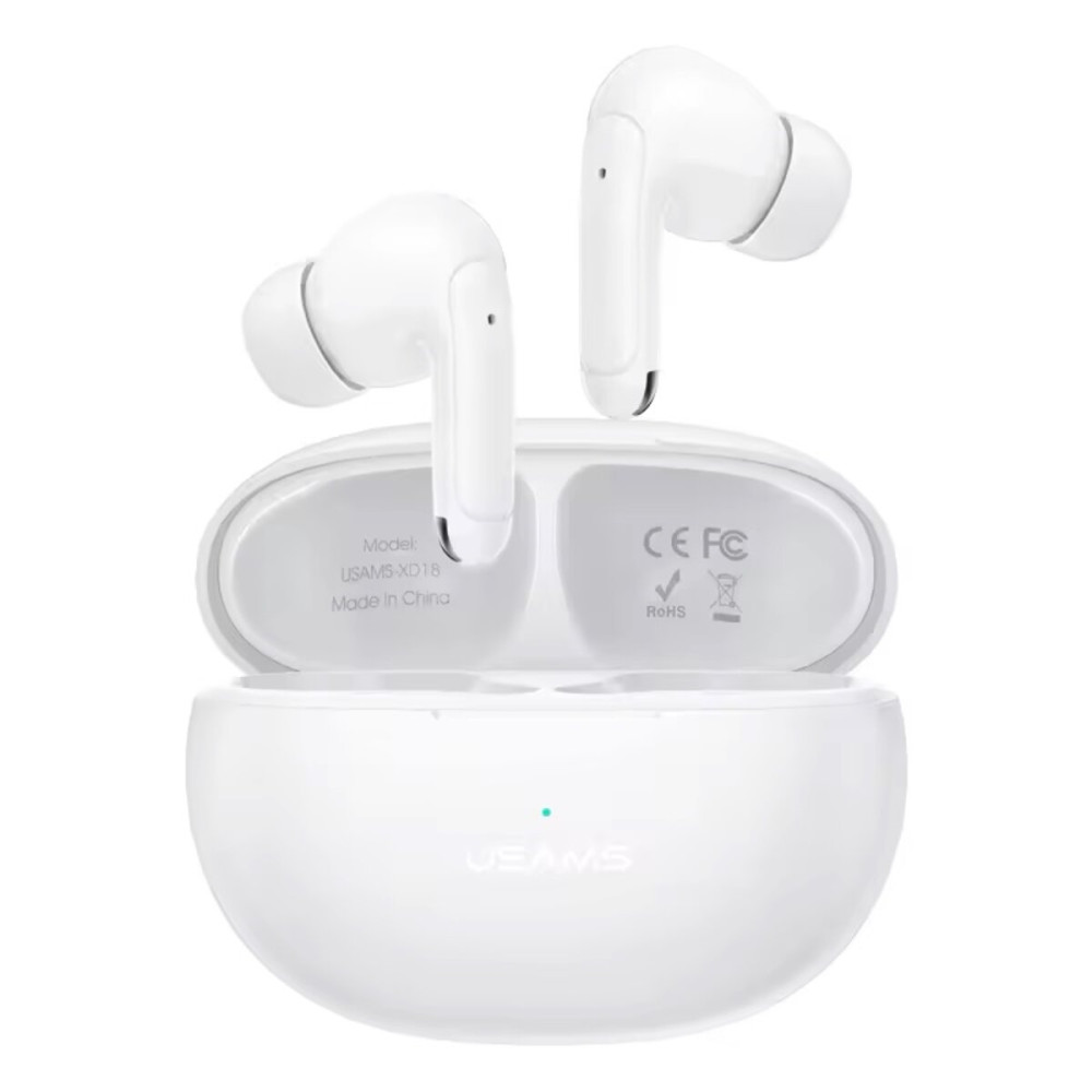 Беспроводные наушники Usams USAMS-XD18 TWS Earbuds X-don Series – качественный звук в сочетании с комфортом. Модель имеет удобные амбушуры, поэтому можно слушать любимую музыку в течение дня и не чувствовать дискомфорта. Подключаются наушники с помощью Bluetooth 5.3. Соединение будет стабильным и качественным. Максимальное расстояние подключения – 12 метров. В наушники встроен аккумулятор емкостью 35 mAh. Этого достаточно для 6 часов непрерывного прослушивания музыки. Зарядный кейс емкостью 400 mAh продлевает автономность наушников до 26 часов. Встроенный микрофон позволяет комфортно отвечать на телефонные звонки. Шумопоглощение микрофона ENC позволяет говорить даже в шумных местах.