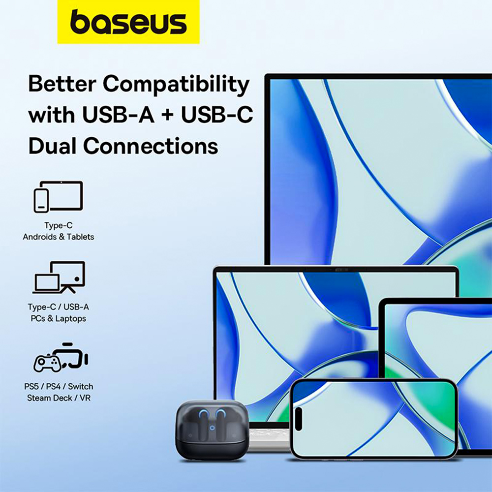 Беспроводные наушники Baseus AeQur G10 обеспечивают лишь 25 мс поражающей задержки. Синхронизация звука с событиями в игре на высоком уровне, что гарантирует еще большее удовольствие от геймплея. Кроме того, в режиме Turbo можно одновременно подключиться к двум устройствам, что позволяет, например, принимать вызовы во время игры.