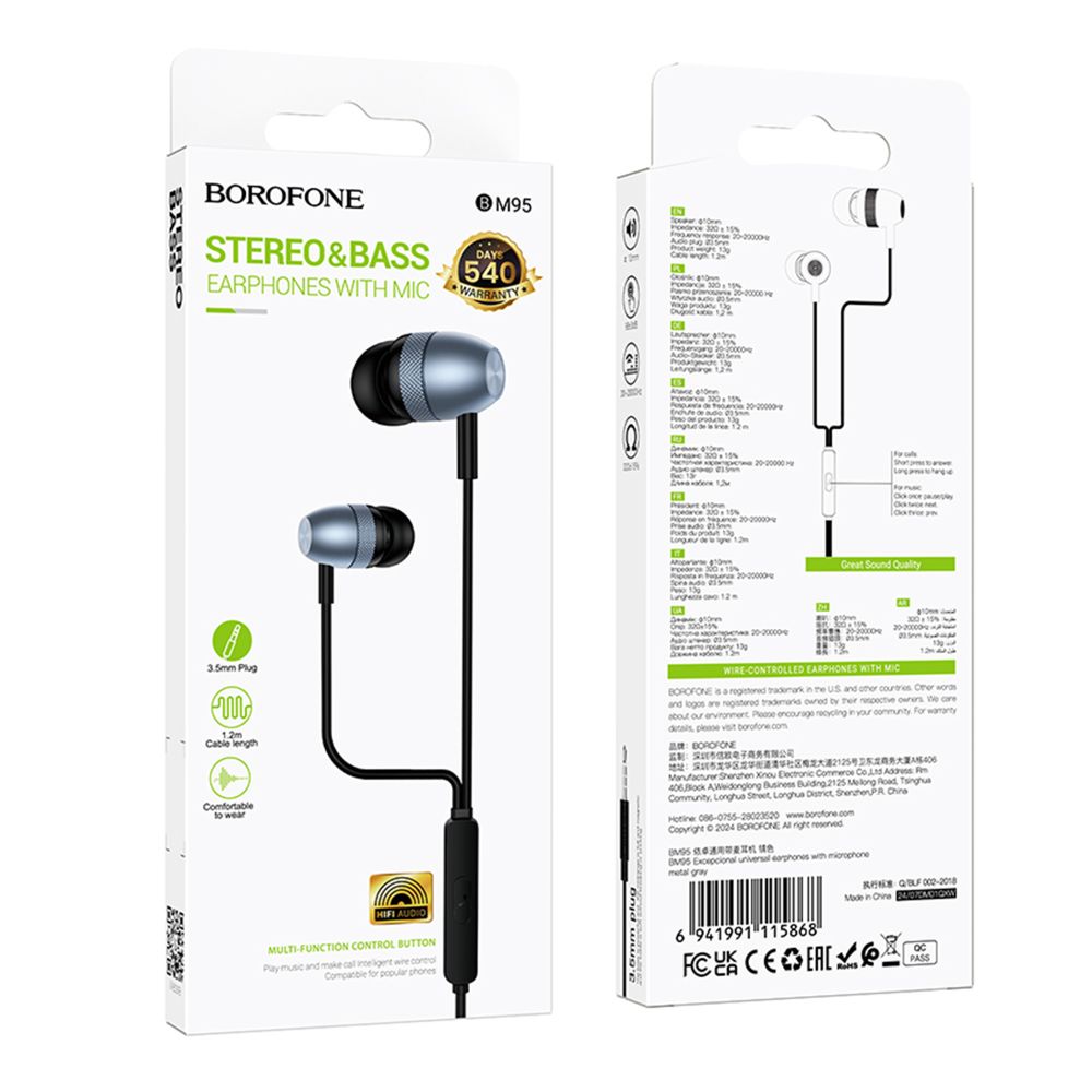 Borofone BM95 — удобные и надёжные проводные наушники для повседневного использования, обеспечивающие комфорт и чистый звук.