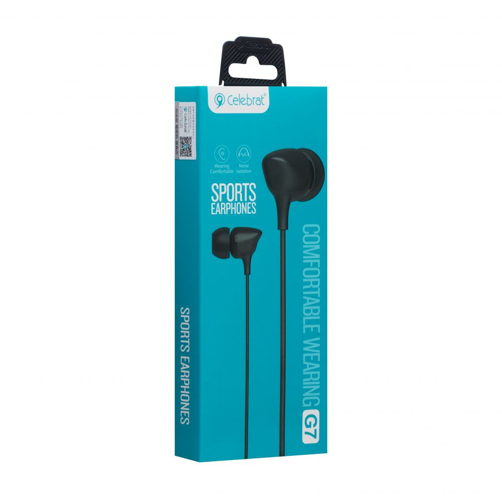 Вакуумные наушники Celebrat G7 предназначены для обеспечения удобства, комфорта и мобильности своих обладателей. Аксессуар представлен в широкой цветовой гамме. Данная модель выполнена в аккуратном дизайне, в наушниках есть микрофон с отличной передачей речи и кнопка приема вызова, можно легко переключатся между прослушиванием музыки и звонками.