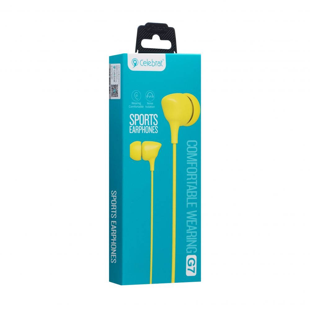 Вакуумные наушники Celebrat G7 предназначены для обеспечения удобства, комфорта и мобильности своих обладателей. Аксессуар представлен в широкой цветовой гамме. Данная модель выполнена в аккуратном дизайне, в наушниках есть микрофон с отличной передачей речи и кнопка приема вызова, можно легко переключатся между прослушиванием музыки и звонками.