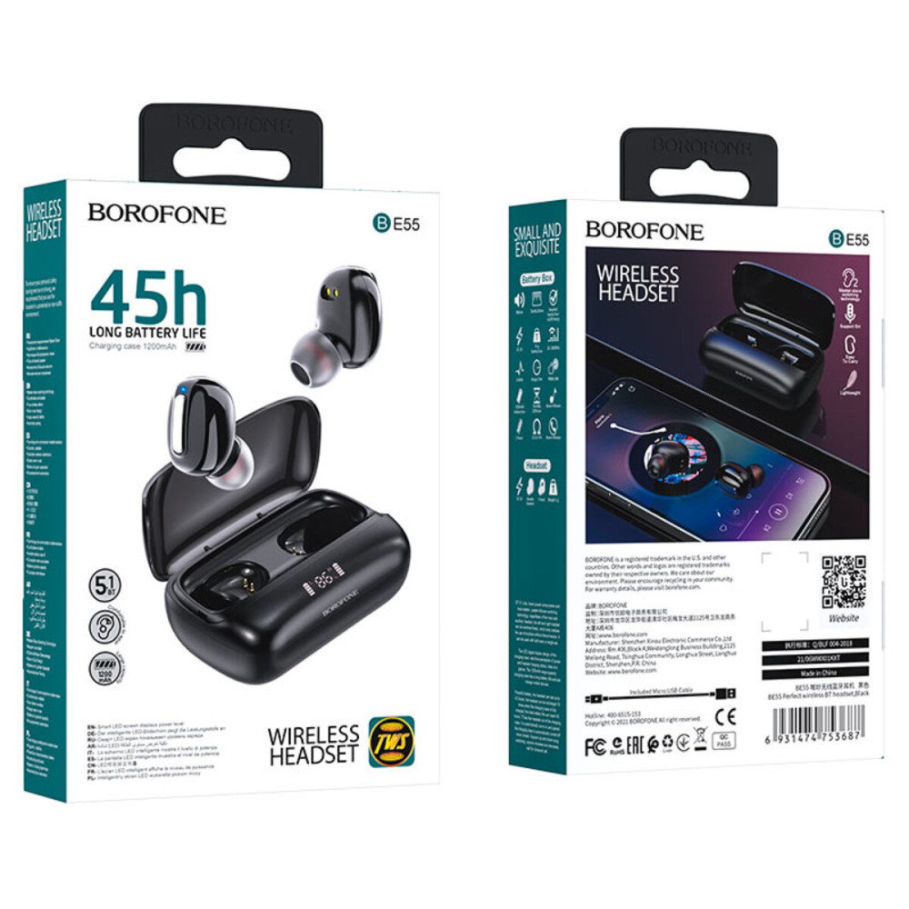 Беспроводные Bluetooth-наушники BOROFONE BE55 Perfect с зарядным кейсом 1200 мАч – идеальный выбор для любителей качественного звука и комфорта. Они обеспечивают 4,5 часа работы в режиме разговора или воспроизведения музыки и до 200 часов в режиме ожидания. Функция переключения ведущий / ведомый делает использование еще удобнее.