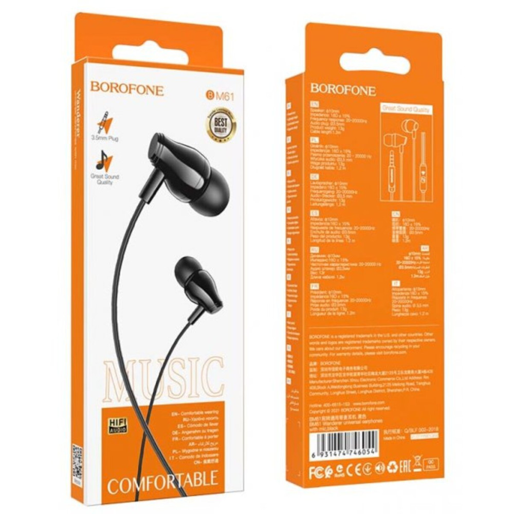 Borofone BM61 — классические наушники с микрофоном для повседневного комфорта